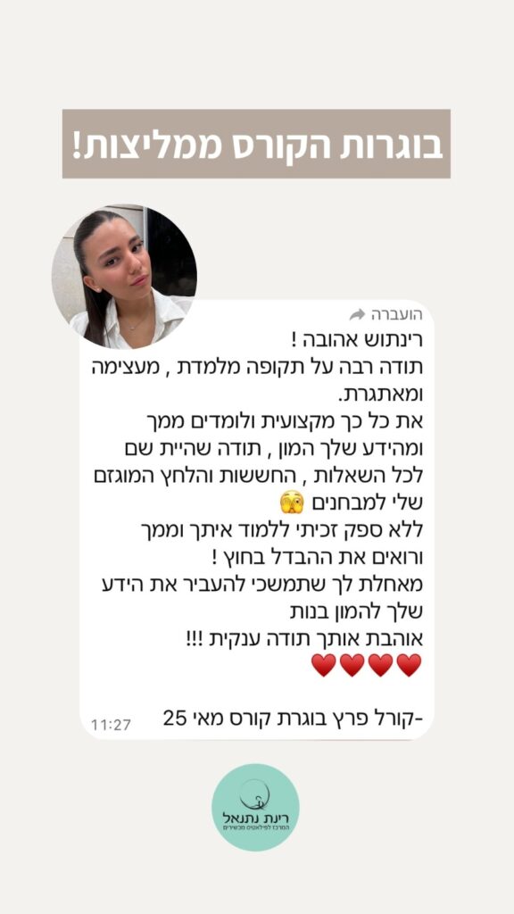 בוגרת קורס דולות ומדריכת הכנה ללידה.