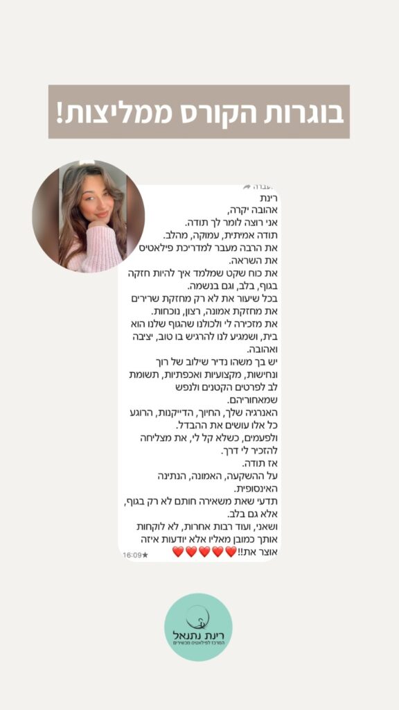 בפילאטיס תומך שיקום, חיזוק ושיקום רצפת אגן ומומחית לנשים בהריון ואחרי לידה.